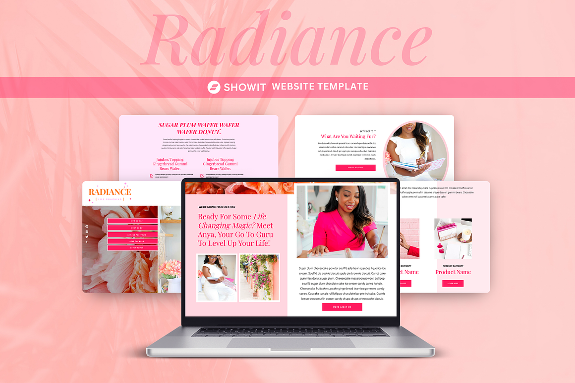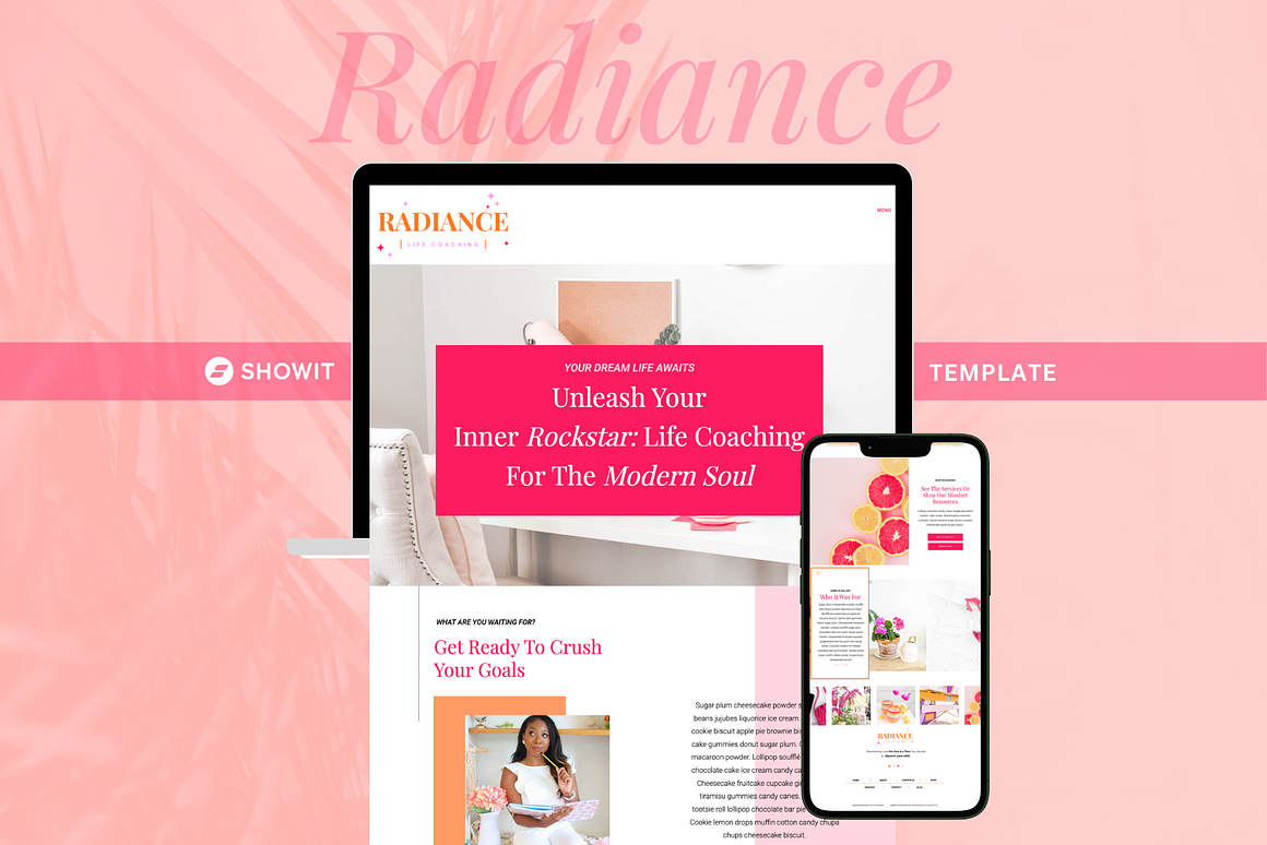Jump into the fast lane and transform your online journey with the Radiance Showit Website Template – the template that roots for your success.