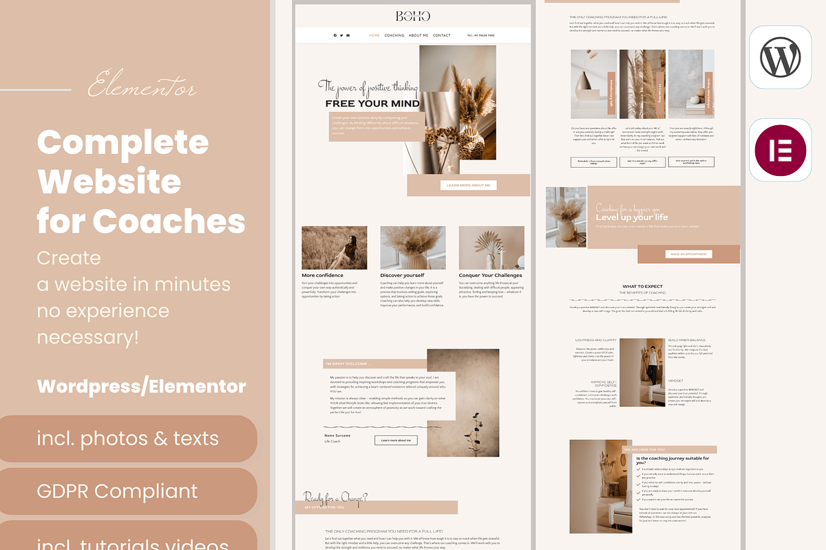 In less than 10 minutes you can create a complete website with Elementor Kit. The tutorial video takes you step-by-step through the entire process, from domain registration to website completion. The kit also includes text and photos, which you don’t have to license. If you already have wordpress, the installation will only take 2 min.