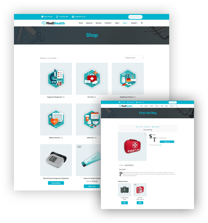 The best and popular medical and healthcare premium WordPress theme for your business. MediHelath Premium theme is designed on the latest Bootstrap 4.x version which is fully responsive and suitable for all types of portable devices. With multiple templates, you can design and develop websites for hospitals, doctors, clinics, health centers, or community health centers, medical stores, health services, drug stores, spa & massage centers. The theme is compatible with popular WordPress plugins like Yoast SEO, Jetpack, Elementor Page Builder, Gutenberg, Block-Enabled, WooCommerce, WPML, Contact Form 7, WPForms, Wordfence Security, WP Super Cache and more.